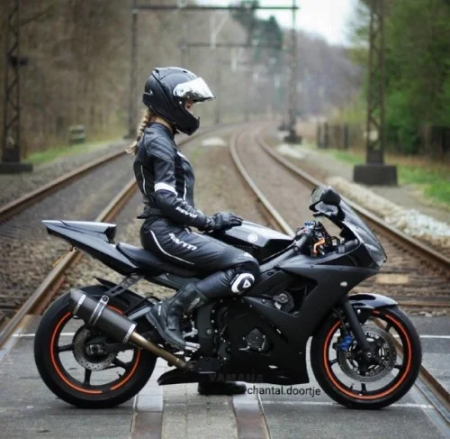Chicas racing bonitas vestidas para rutear por el mundo con sus potentes motos y sus espectaculares cuerpos enfundados en cuero